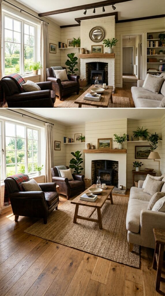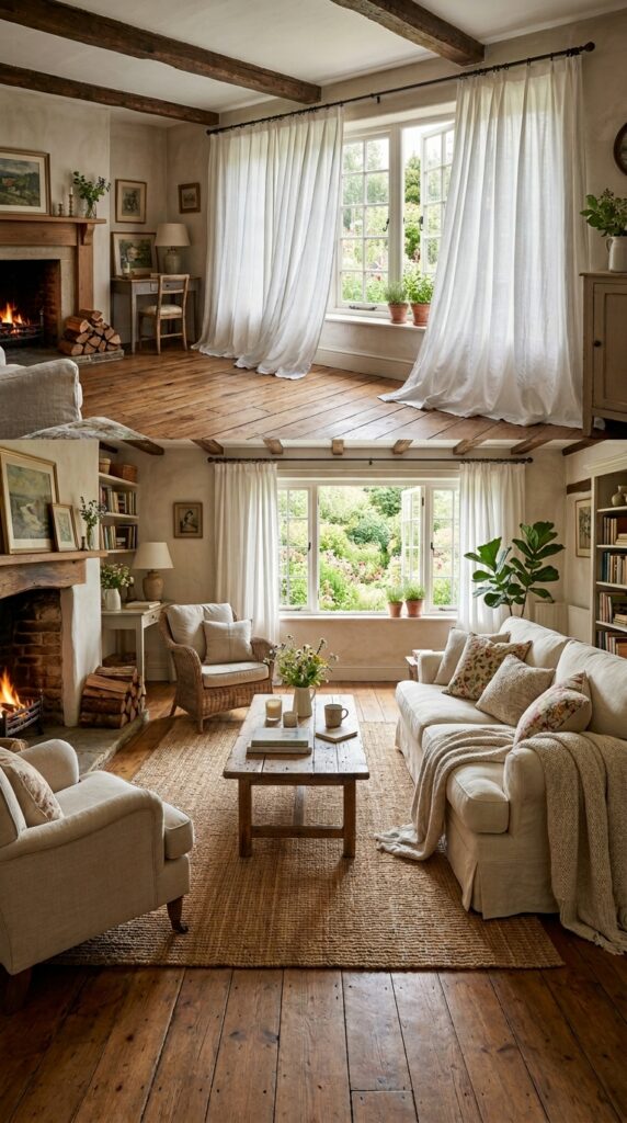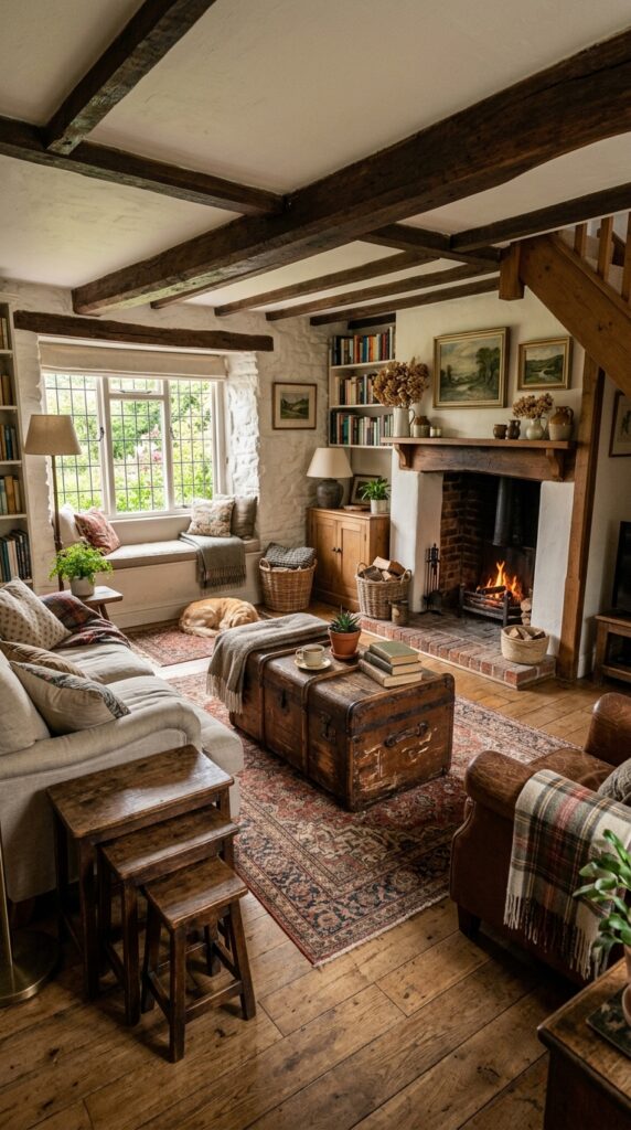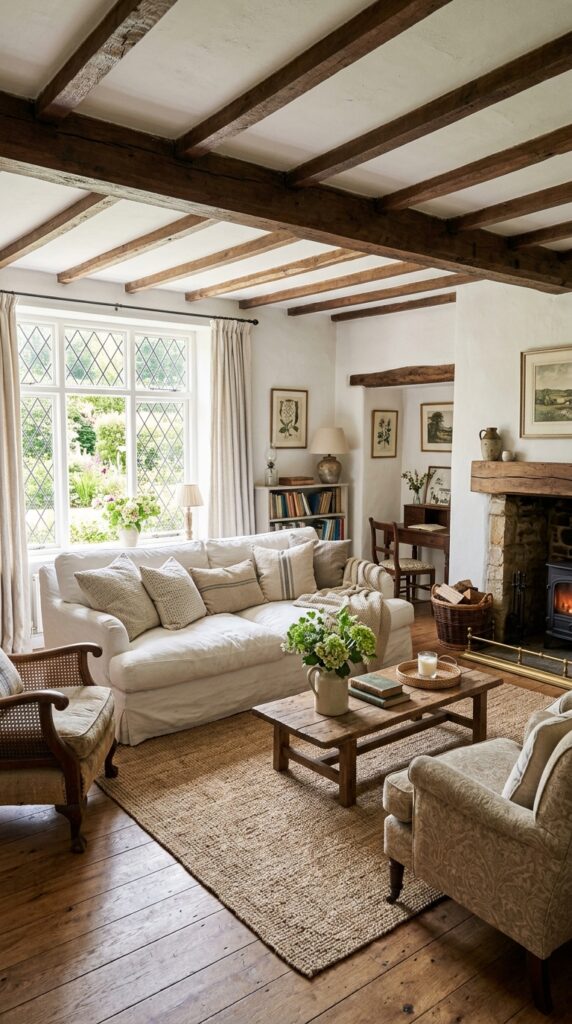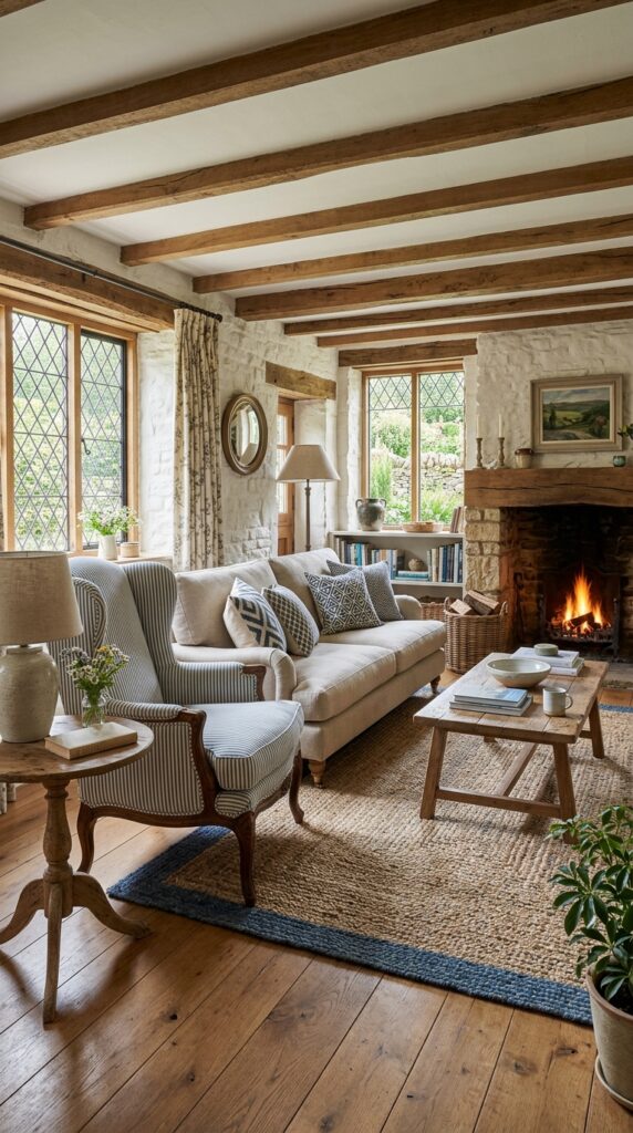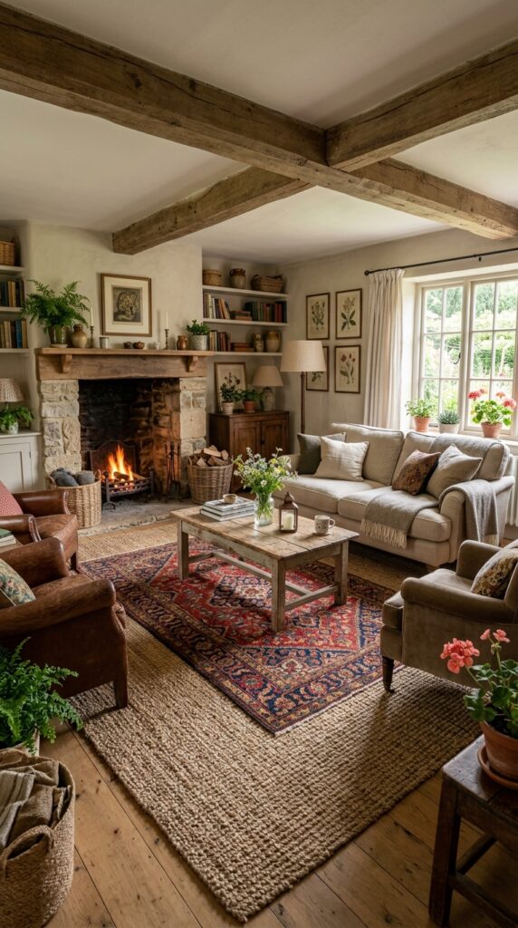Cottage Living Room: You want a simple cozy home without sacrificing your entire weekend to complicated DIY projects. Pinterest throws millions of perfect images at you every single day. We look at those pristine white couches and immediately imagine spilling coffee on them. Real life demands practical choices that still look absolutely stunning. Transforming your living space requires smart styling – not endless cash. I prefer natural textures over plastic any day of the week. And nobody actually enjoys dusting twenty tiny porcelain figurines. Creating a warm haven means picking pieces you genuinely love. Grab your favorite notebook because we have serious work today.