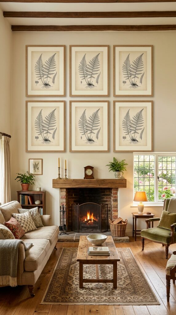Symmetrical Grids: You hang six identical fern prints in a neat structured block. Chaotic gallery walls often look incredibly messy if you miscalculate the spacing. You keep things orderly and clean with a precise uniform arrangement. Your friends think you hired an expensive interior designer for this trick today.