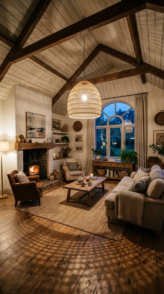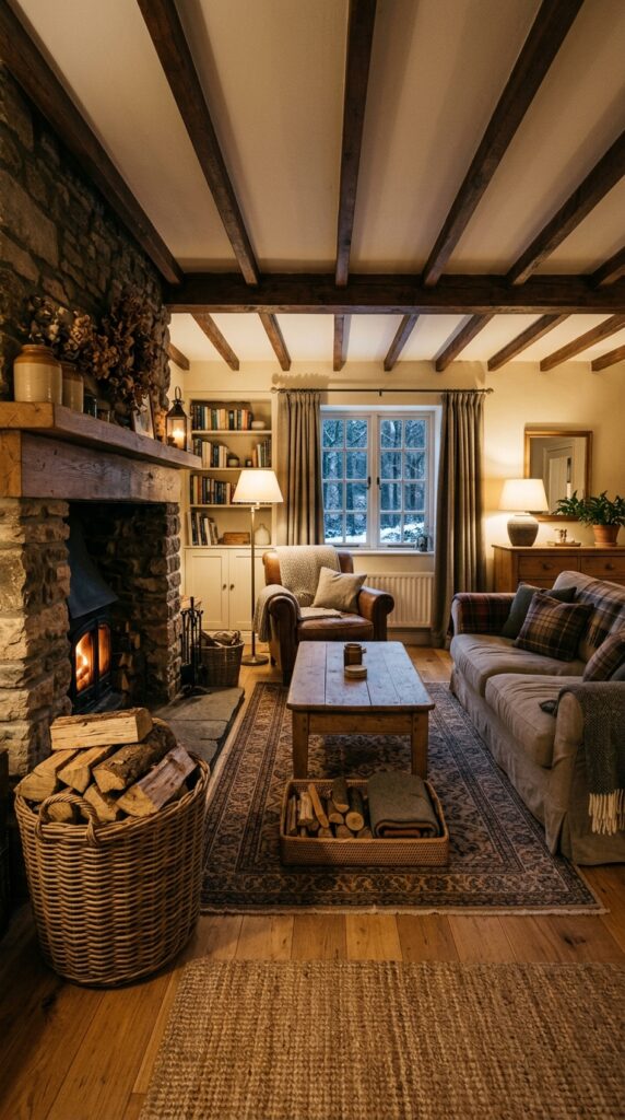 You embrace a slower, intentional lifestyle focused entirely on comfort and warmth. You reject sterile, untouchable showroom aesthetics immediately. You display items you actually use daily – like stacked firewood, thick mystery novels, and heavy knitted blankets. Your house welcomes guests warmly and forgives muddy dog paws easily. You create a simple cozy home that genuinely functions for real, messy life.
