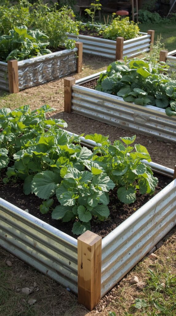 Leftover metal roofing panels make shockingly good raised beds for almost no money. They’re already designed to handle weather, they last forever, and that corrugated texture adds unexpected visual interest. Hardware stores often have dented or discontinued panels on clearance that work perfectly.