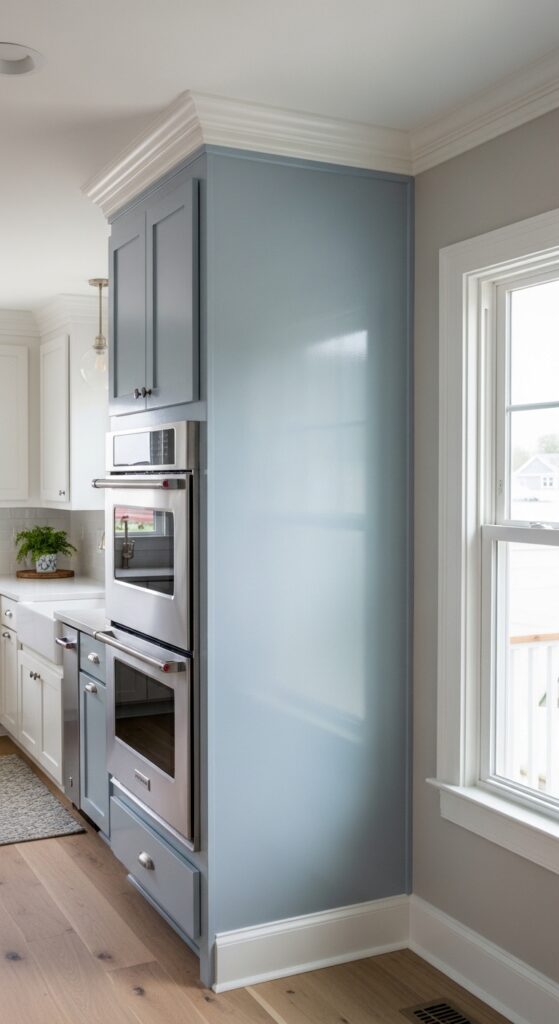 The wrong paint color shrinks an already-small kitchen even more. You choose one wall (usually the one you see first when entering) and paint it with a high-gloss or semi-gloss light color. The sheen reflects light around the room, making the space feel more open. Glossy paint on an accent wall creates depth and interest without overwhelming a small space. You might go with a pale blue, soft gray, or classic white with a sheen that catches light. This trick costs you one gallon of paint and a few hours. The impact’s immediate and dramatic.