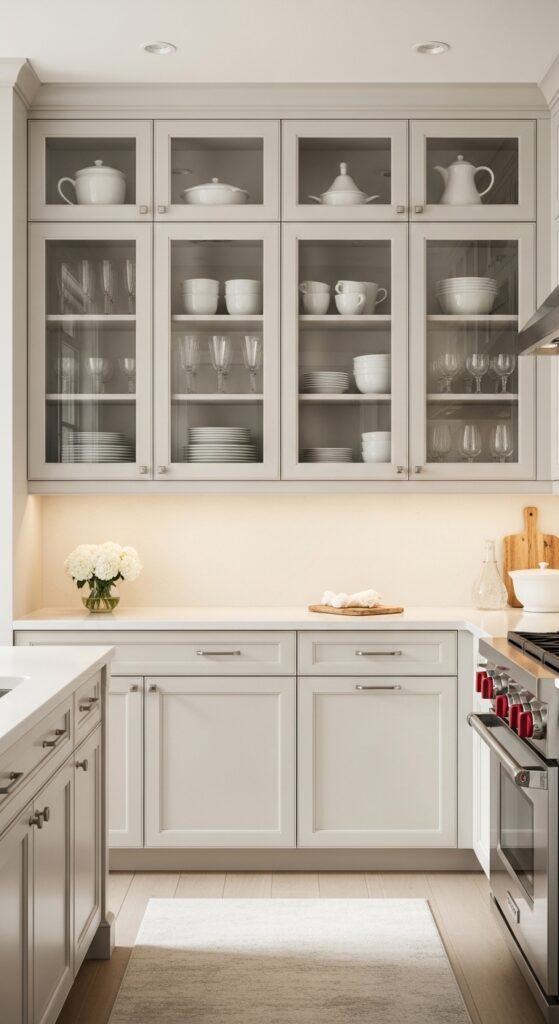 4. Replace Solid Doors With Glass-Front Cabinets